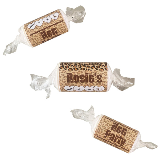 Personalised Leopard Print Hen Night Party Love Heart Sweets
