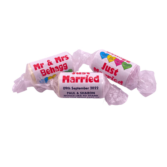 Personalised Love Heart Sweets Just Married Wedding Favours